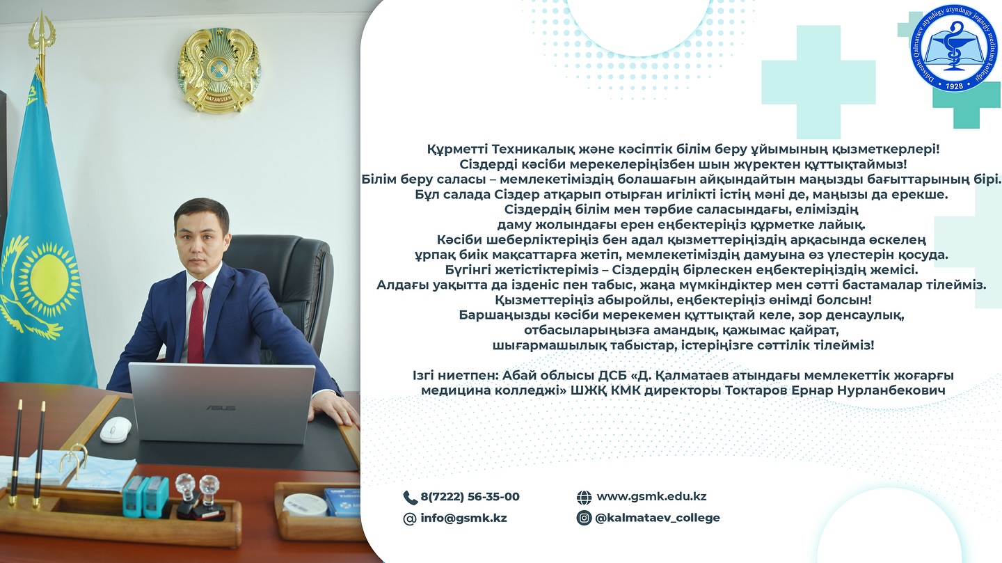 АБАЙ ОБЛЫСЫ ДСБ «Д. ҚАЛМАТАЕВ АТЫНДАҒЫ МЕМЛЕКЕТТІК ЖОҒАРҒЫ МЕДИЦИНА КОЛЛЕДЖІ» ШЖҚ КМК